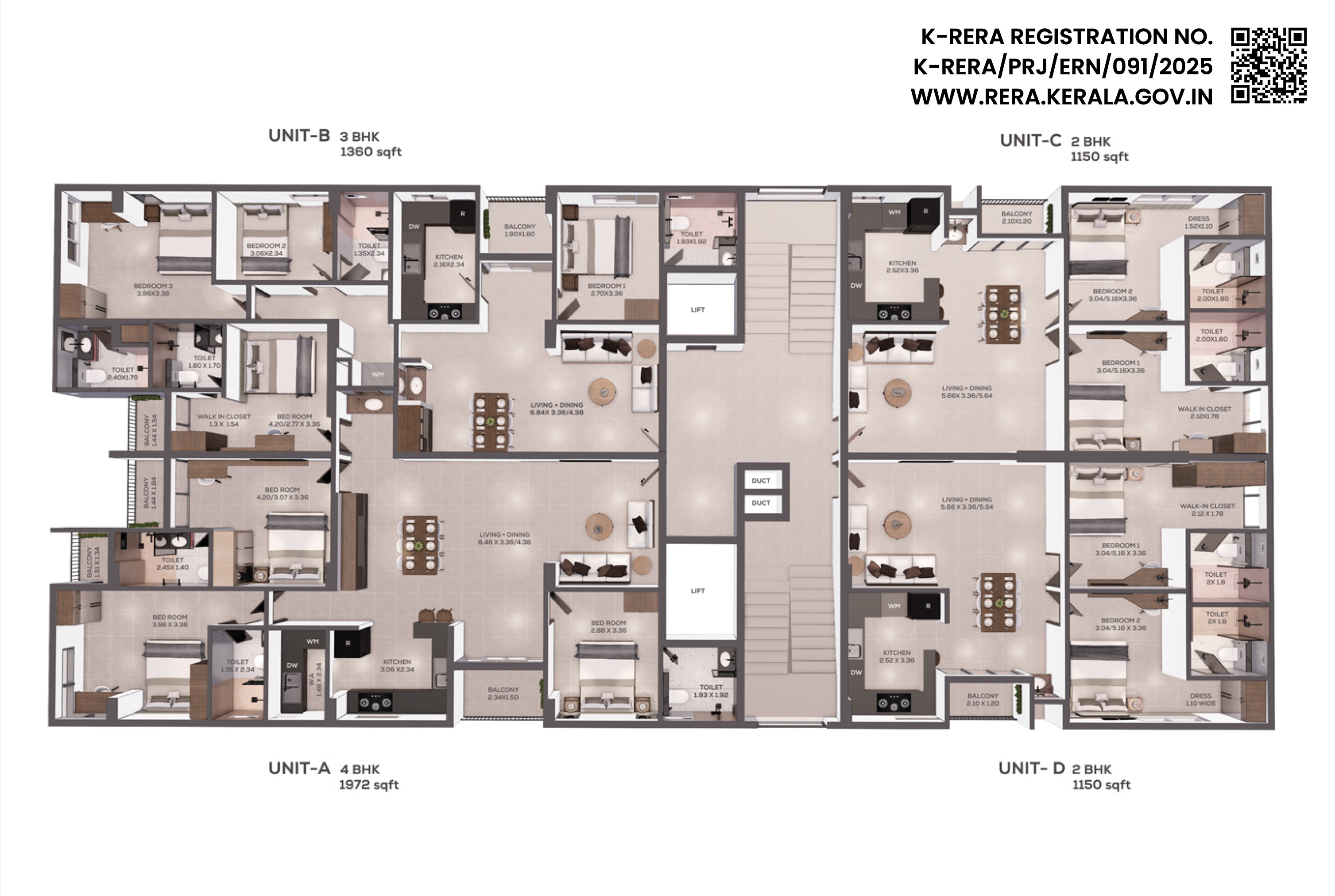 Located at Kalamassery, Kochi, this iconic address faces National Highway 47 and is just steps away from the CUSAT Metro Station, offering unmatched urban connectivity. Featuring 2, 3, and 4 BHK apartments and 20+ world-class amenities, BEYOND INFINITY marks a bold leap into the future—where smart living blends seamlessly with futuristic design.